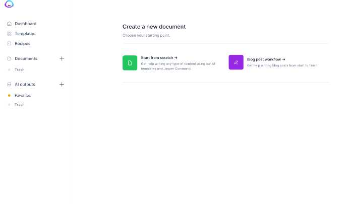 Open up the Jasper tool and click the + button next to documents, then click on "Blog Post Workflow"