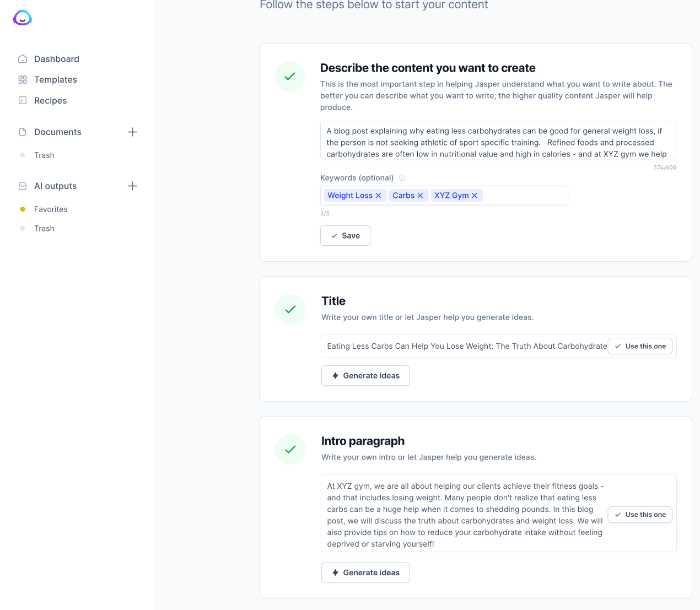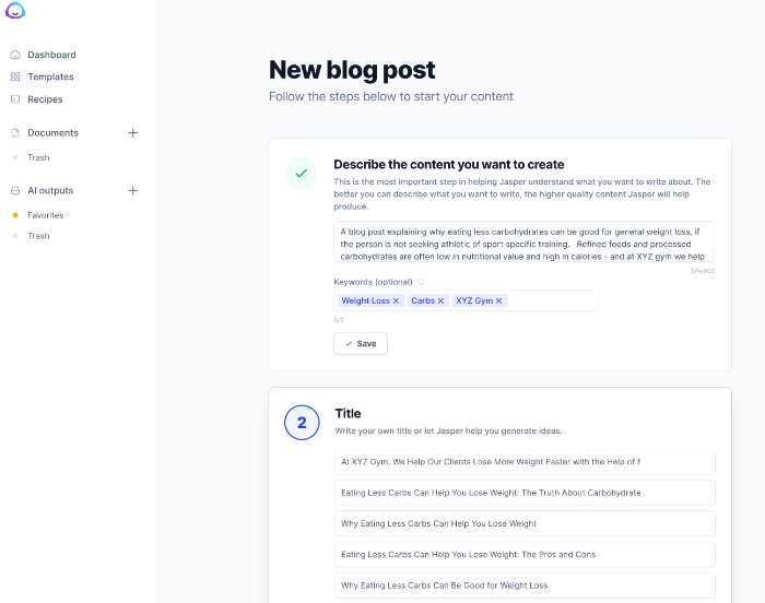 Start your description with "a blog post" so Jasper knows you are writing a blog post.